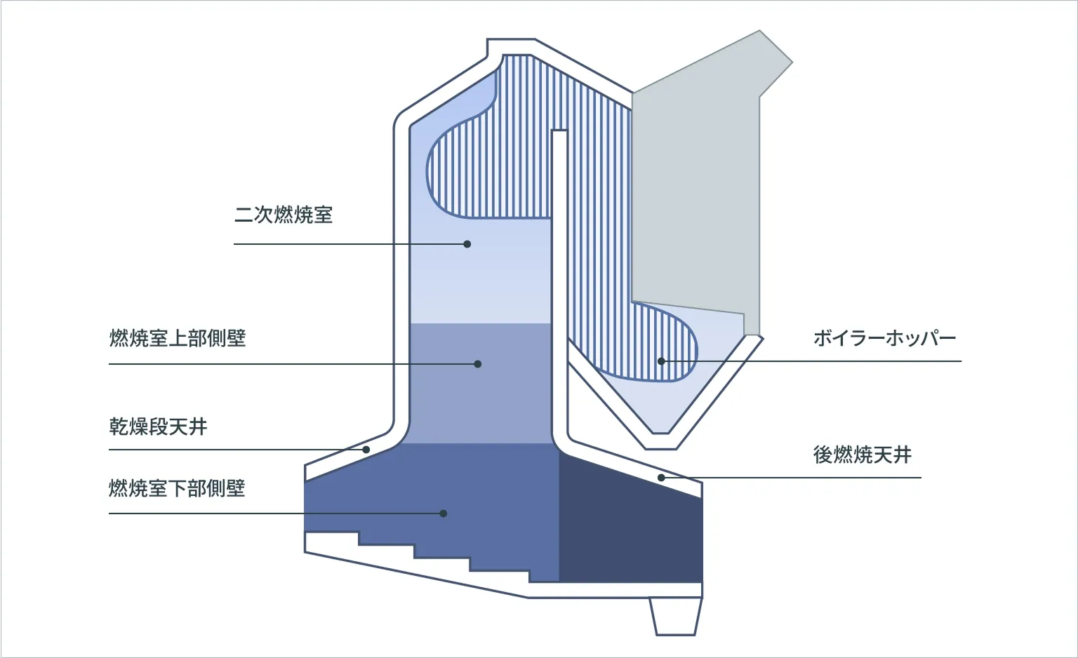 適用部位:燃焼室壁/天井/ボイラー壁(SiC 質)
