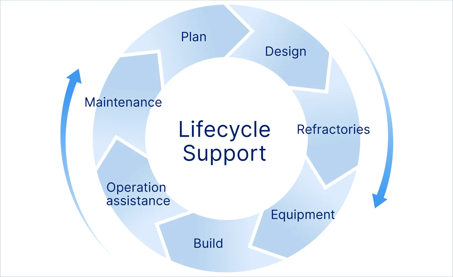 We offer tailored solutions for every stage of the furnace lifecycle—Design, Building, Operation Assistance, and Maintenance—meeting customer requirements at each phase.