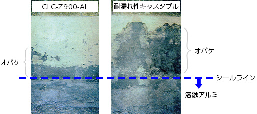 CLC-Zシリーズはジルコンを含有しているため、耐アルミ濡れ性に優れ、アルミの浸透抑制、酸化付着物の抑制、耐火物の黒色化抑制に大きく貢献します。