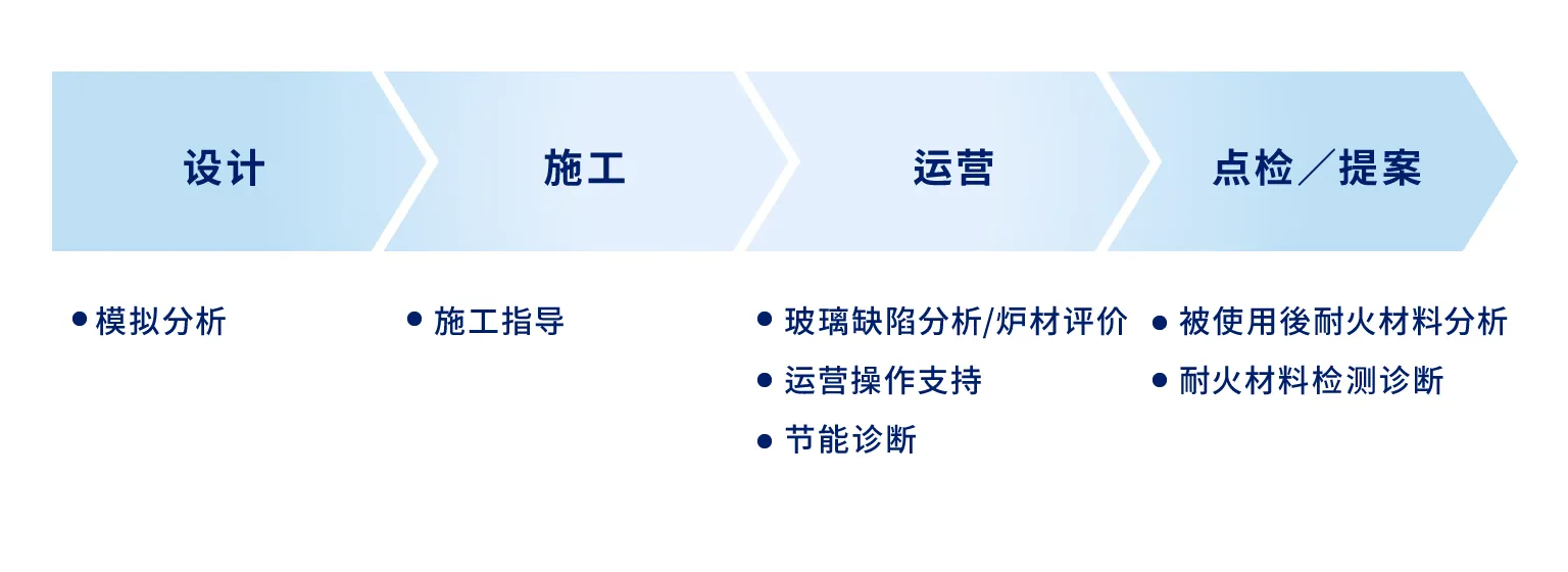 分析被用于工厂设备或玻璃熔融炉的耐火材料,在修补工事、冷修时使用后的损伤原因,支持最优材料选择。